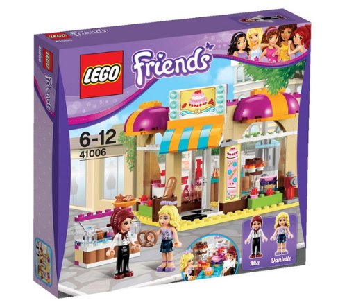 LEGO Friends - Downtown Bakery - 41006 41006 (Bake a custom cake at the Downtown Bakery with Mia! Open the sweet little shop by building the sign, canopy and outdoor display... ) - Bake a custom cake at the Downtown Bakery with Mia! Open the sweet little shop by building the sign, canopy and outdoor display. Fill the shelves with cakes, bread, cookies and croissant accessory! When a customer arrives to order a wild-berry birthday cake, get creative in the kitchen with lots of food and utensils. Set the mixture into a pan and place it in the oven until it's baked to perfection! Decorate it with fruit and ring up the order on the cash register. Includes Mia and Danielle mini
