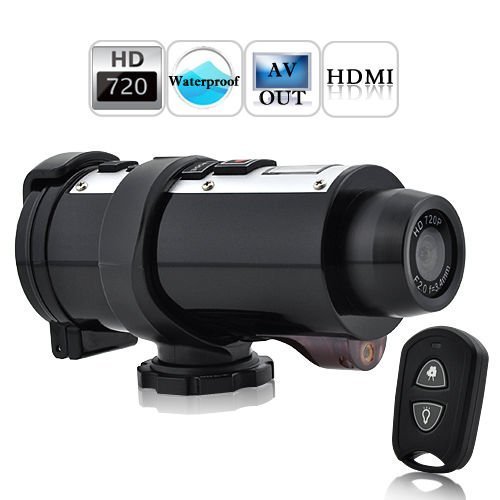 - 720P HD video recording at 30FPS. Waterproof. Built-in microphoneRemote control. Can mount almost anywhere. Supports SD card up to 32GB. Great for all types of action sports such as two or four wheel vehicle racing, skiing, biking, rock climbing, paintball, sky diving, water exploration. Button activated Laser Light for positioning. HDMI and TV out.