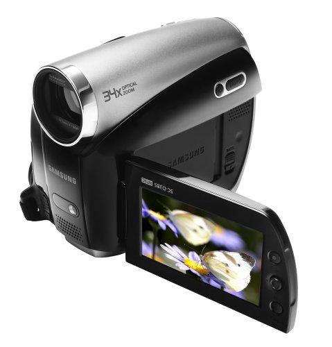 Samsung VP-D381/XEU MiniDV Camcorder (34x Optical Zoom) - Records in/on MiniDV tape format34 x Optical zoom , 1200 x digital zoom800k pixel CCD2.7'' widescreen LCD viewscreen for playback and use as a viewfinderVoice plus dubbing system to add commentary to recorded footage