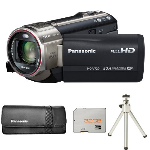 Panasonic HC-V720 Camcorder - Black + VWPS65XEK Case + 32GB Card and Tripod (20.4MP,50x Intelligent Zoom) 3 inch LCD